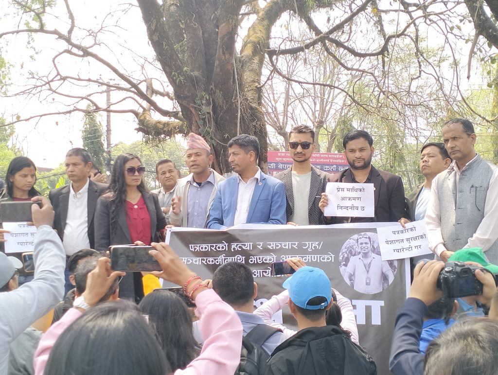 पत्रकारको हत्या र सञ्चार गृह/सञ्चारकर्मीमाथि भएको आक्रमणको विरोधमा विरोध सभा